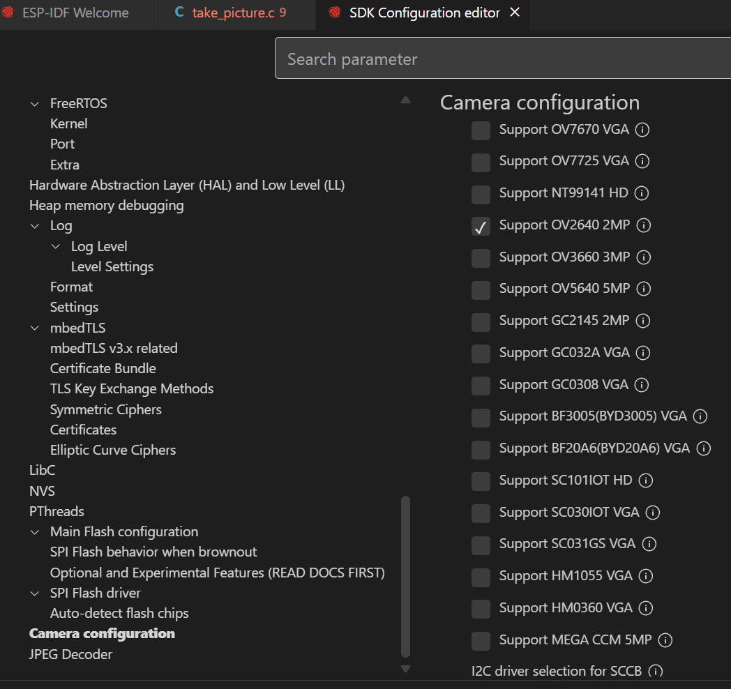 以ESP Component espressif/esp32-camera组件的example为工程进行实践。
