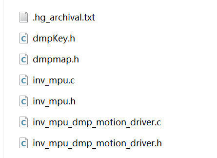 使用MPU6050的DMP进行姿态解算。下载DMP库,获取的文件如下图。将DMP库源码文件并入工程。