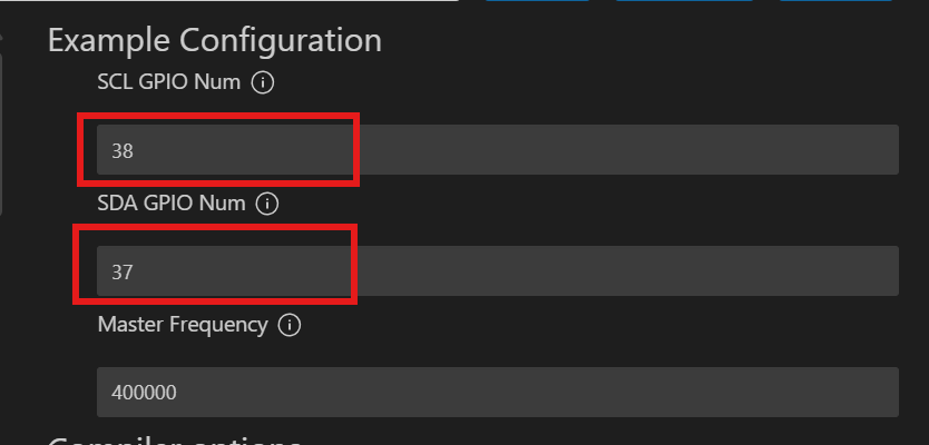 改动1:Example中使用的SDA和SDL引脚改为自己的硬件连接。