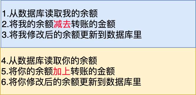 可以看到这个转账的过程涉及到了两次修改数据库的操作。