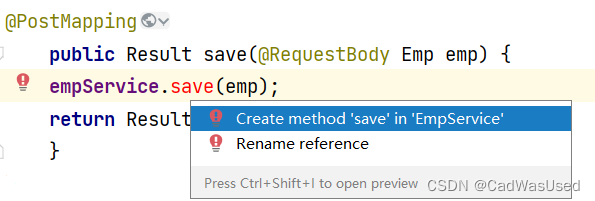 我们用Alt+Enter点击报红的方法,让他去Service层创建抽象方法