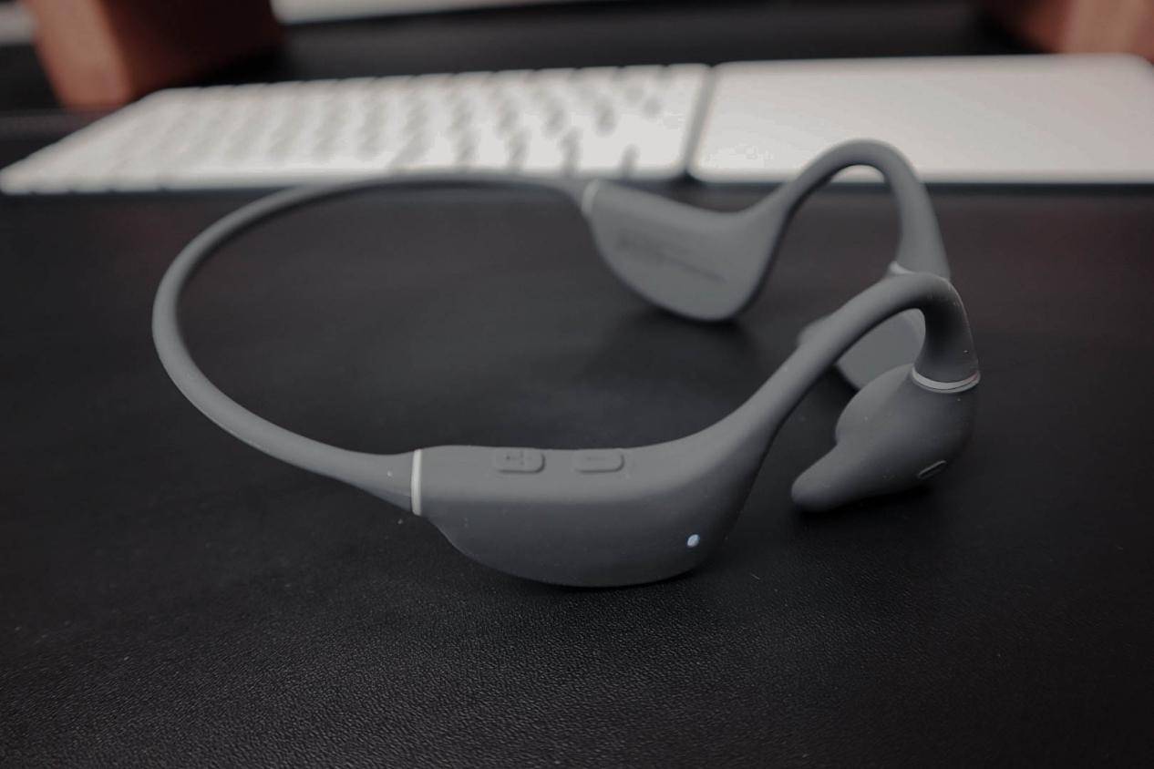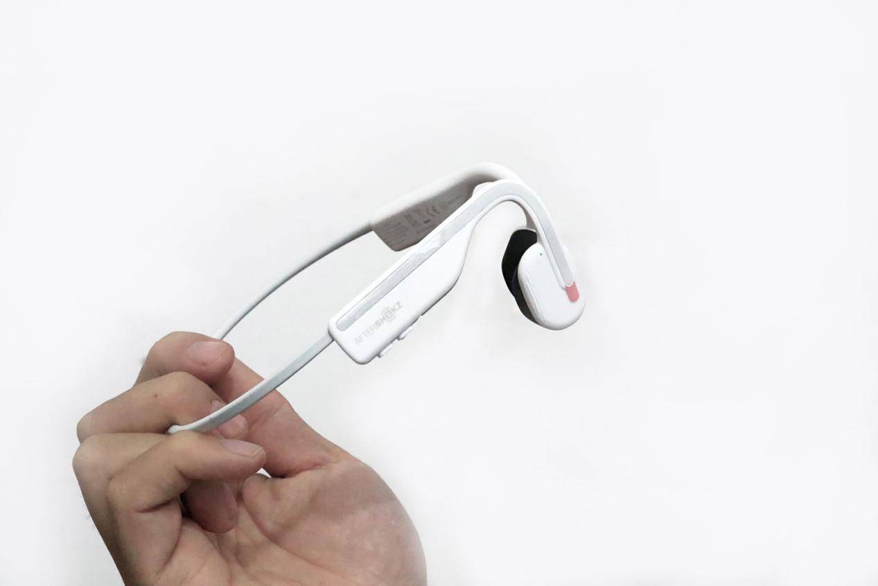 “7”字形外观造型下得整体机身偏向于塑料材质,耳挂处采用了钛合金骨架,可以在随意弯折的程度下恢复到原样,柔韧性强,IPX5的防水性能在面对日常汗水下能够轻松抵御,但是不建议汗水在机身表层长时间停留。29g的轻盈机身在佩戴的全过程没有压耳的现象,此外拥有PremiunmPitch™2.0技术的三频表现上均衡,但由于是入门级别的骨传导耳机,在漏音处理方面尚未成熟,在通话质量上会有逊色一点。