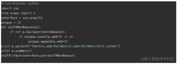 下⾯是⼀个简单的脚本来提取⾮信标包和SSID: