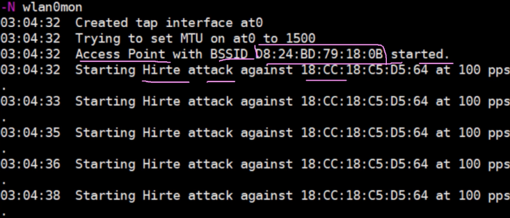 1.安装一个假的WEP AP(wifi名,mac地址要相同)并等待客户端连接