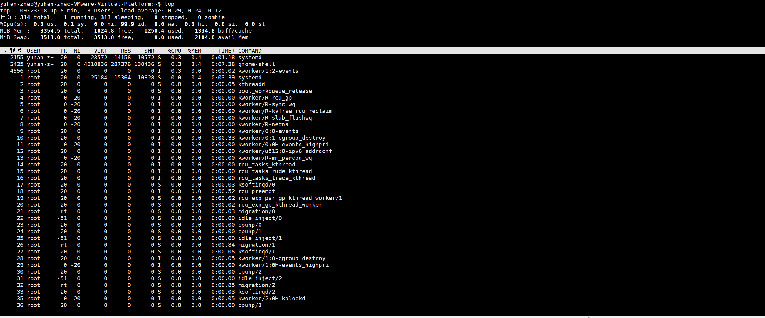 top:实时监测进程
