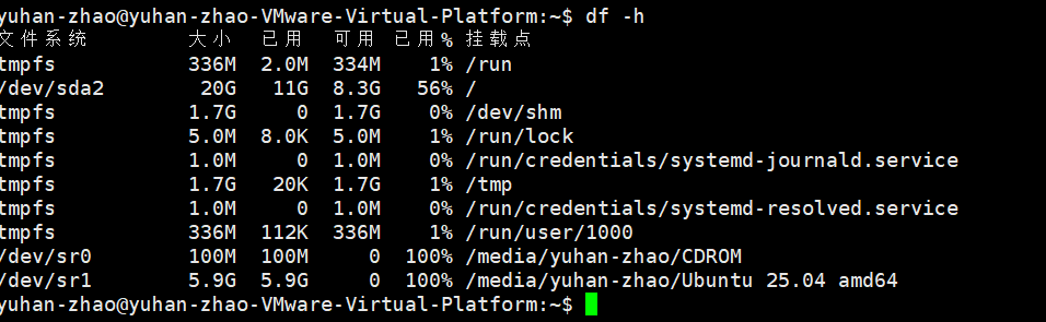- 用途:显示所有挂载磁盘的使用情况。