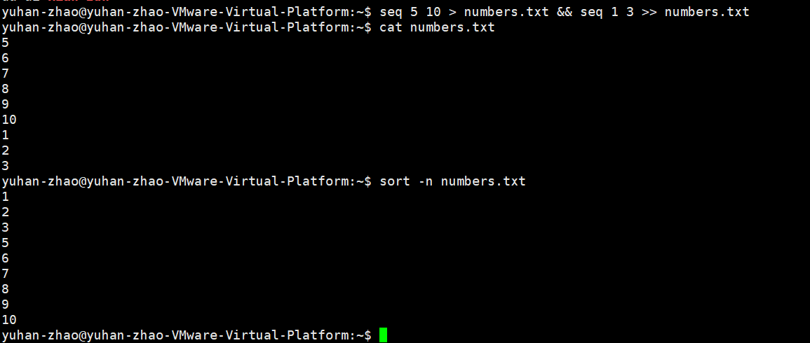- 输入重定向(<):将文件内容作为命令输入。
