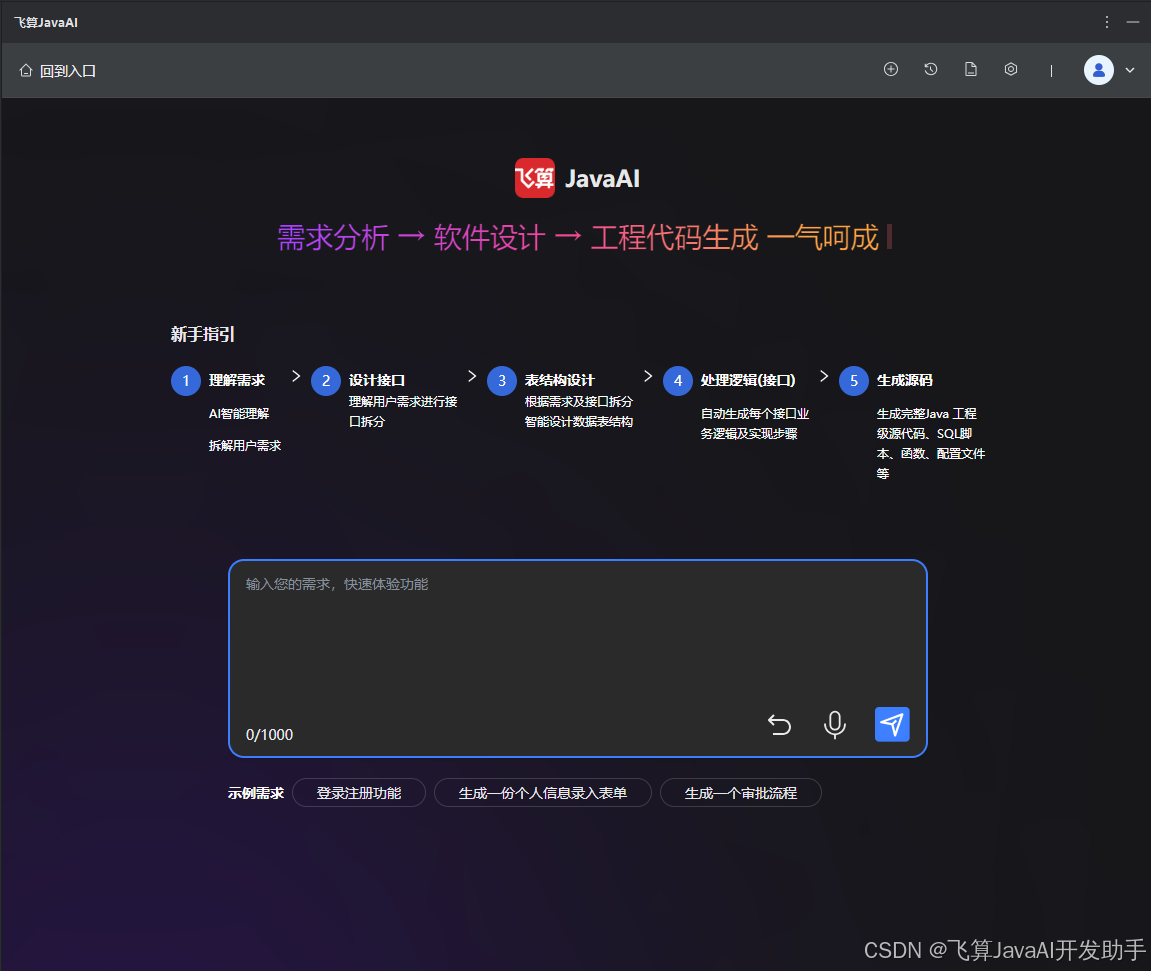 无论是开发大型项目中的复杂功能,还是简单地创建一个小接口、编写业务代码,飞算 JavaAI都能游刃有余。面对从 0 到 1 的新项目,它通过引导式提问逐步细化需求,最终自动化生成完整的工程源码让项目开发一气呵成。