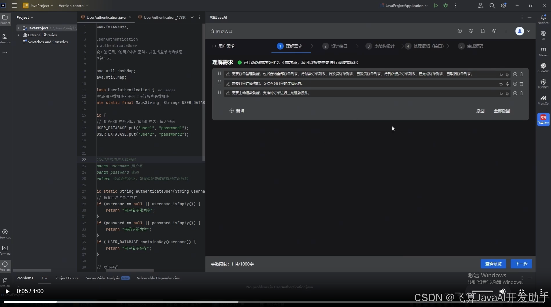 在需求分析阶段,飞算 JavaAI 支持文本与语音输入,运用大模型的强大语义理解能力,精准洞察复杂业务需求细节。在软件设计环节,利用自动化设计引擎,通过自研 Java 专有模型一站式生成接口与表结构,辅助开发者梳理业务流程与数据库结构设计。在代码生成过程中,不仅能自动生成各接口详细逻辑流程,定义接口间关系,还能处理依赖关系、配置文件等。最后输出完整、可直接使用的代码工程文件,并进行初步语法检查与优化。