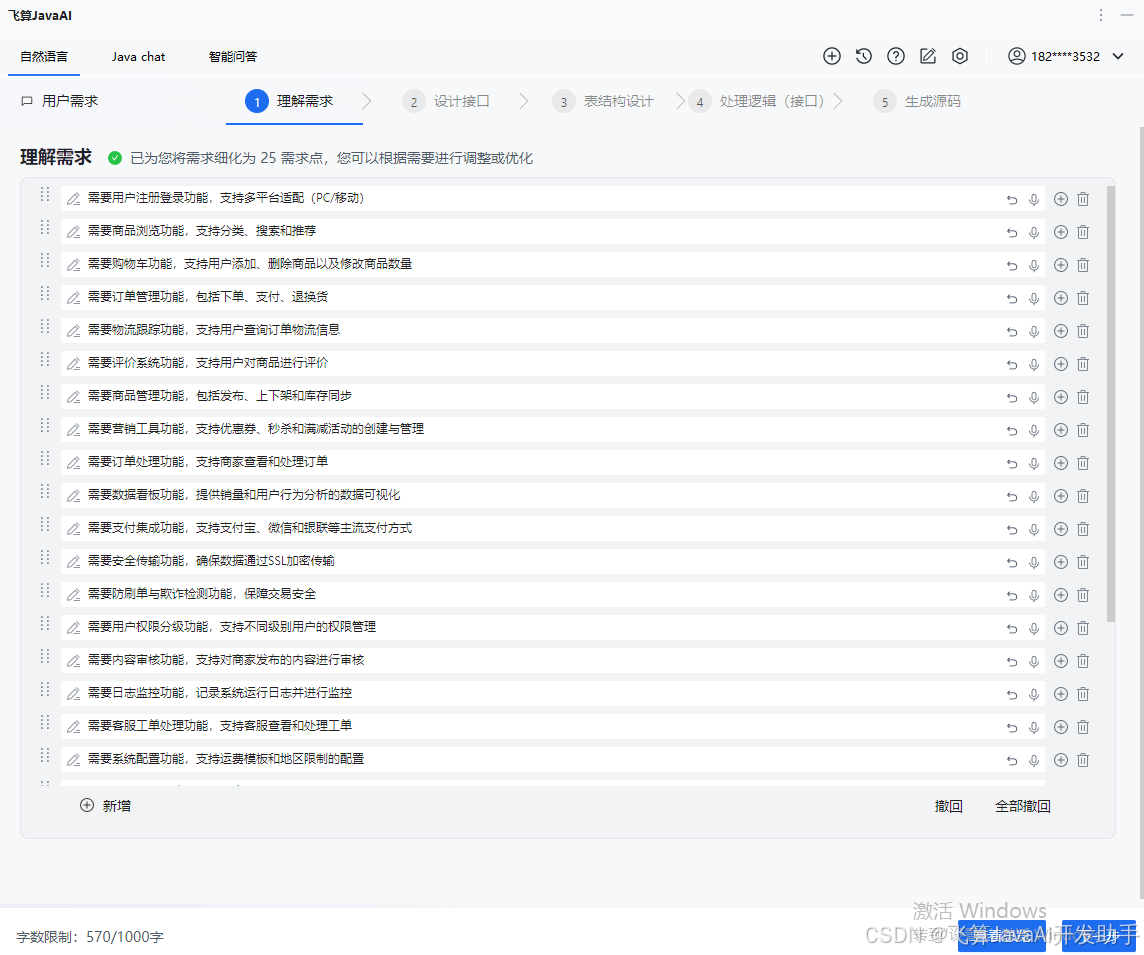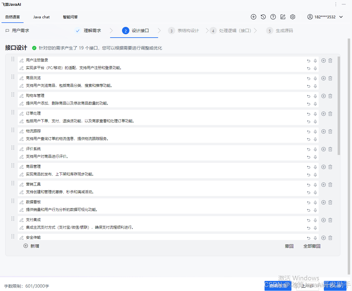 使用飞算JavaAI 自然语言,输入完成需求。