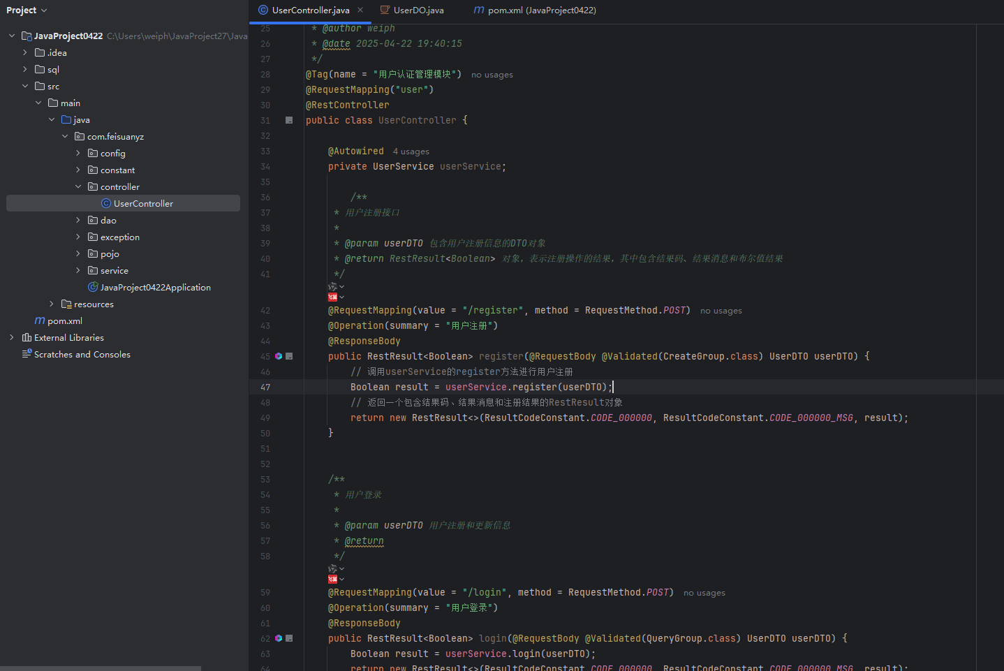 - 代码风格统一:符合阿里巴巴Java开发规范,方法命名(如`getUserById`)清晰。