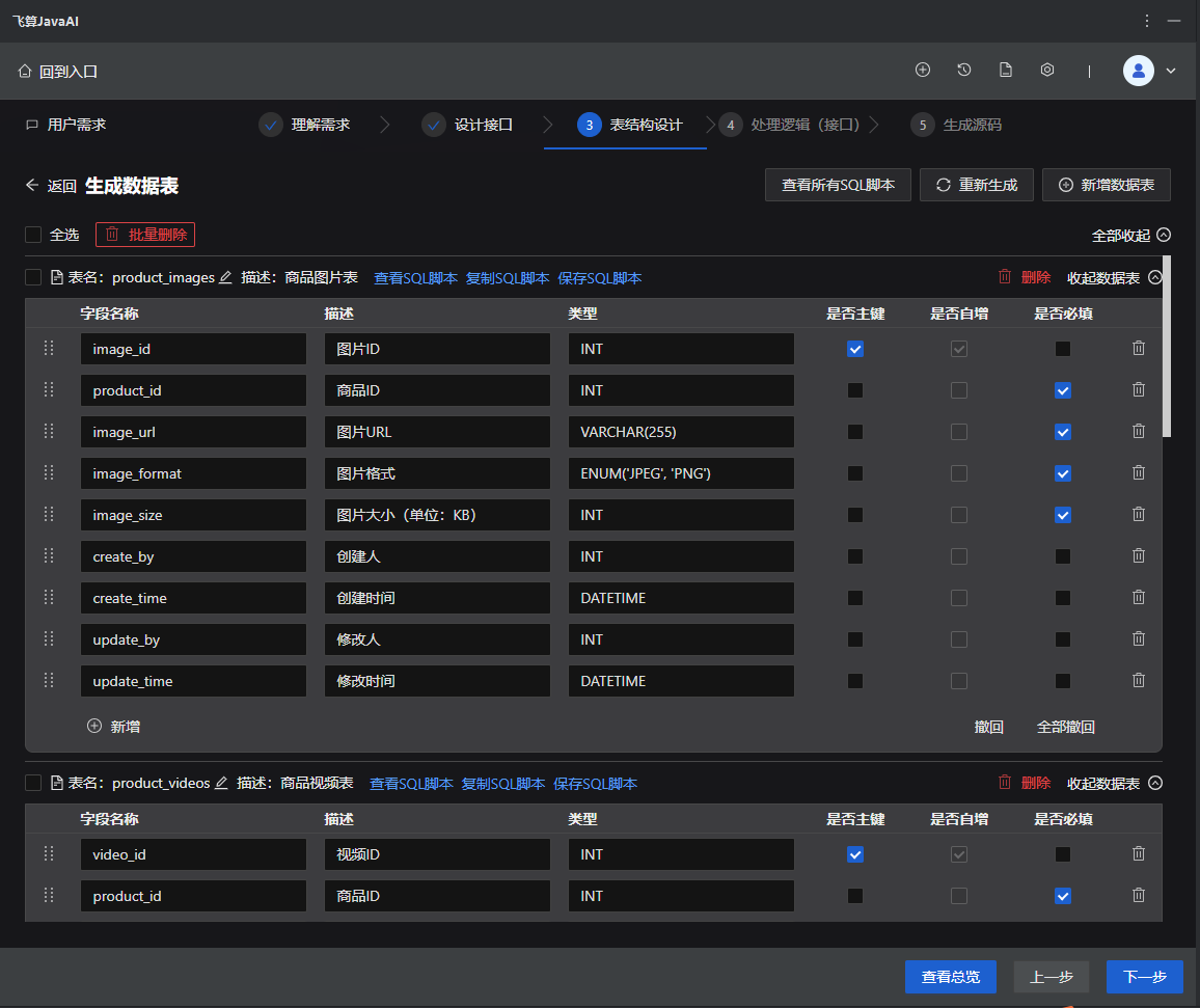 飞算 JavaAI 的自动化设计引擎,直接把这 “烧脑活” 变成了 “轻松事”。它内置自研的 Java 专有模型,就像一位深藏不露的设计大师,能根据需求,一站式生成专业、可靠的接口和表结构设计方案。生成的接口仿佛被赋予了 “智慧”,具备良好的扩展性,能轻松应对未来业务的千变万化;表结构设计严格遵循数据库设计最佳实践,数据交互流畅无阻。不仅如此,飞算 JavaAI 还能自动拆解复杂的业务逻辑,将其细化为清晰易懂的具体实现步骤,为你构建出完整、科学的设计框架。开发者无需再为设计细节抓耳挠腮,一键操作,就能收获高质量的设计成果,节省的时间和精力,都能用来探索更多技术创新了!