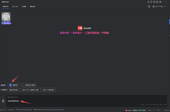 飞算 JavaAI 以智能引导为核心,通过全自动线性引导的五个步骤,助力开发者完成需求分析、软件设计以及工程代码生成等工作。在需求分析阶段,它支持文本和语音两种输入方式,借助先进的大模型技术进行语义理解,精准捕捉每一个业务需求。例如,开发者只需通过语音描述“开发一个用户登录并记录登录信息的功能”,飞算 JavaAI 便能迅速把握核心需求。