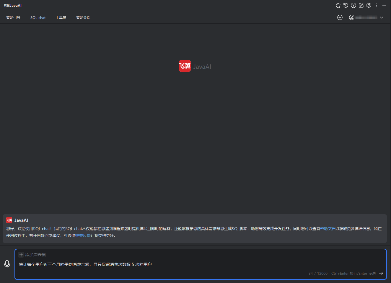 直到我用上飞算 JavaAI,才发现原来 SQL 还能这么写 —— 它的 “SQL Chat” 功能,居然支持用自然语言聊聊天就生成 SQL,关键是这还是市面唯一能这么玩的产品,体验直接拉满!