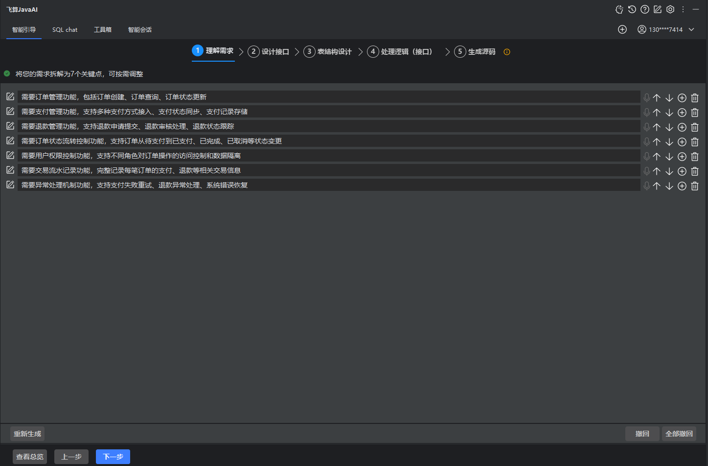 订单系统想加个“电子签章”功能?不用改现有代码!在插件中补充需求,AI自动识别依赖关系,在原有工程中新增签章模块,同步更新订单状态的EventPublisher逻辑,连Swagger接口文档的版本号都自动迭代。更支持“渐进式生成”——先搭骨架,再逐步完善,真正实现“需求变,代码跟,零重构”。