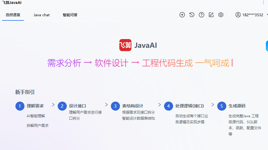 在众多工具中,飞算 JavaAI 开发工具因其 “全栈开发支持” 和 “深度场景适配” 脱颖而出。与仅关注代码片段的工具不同,飞算 JavaAI 将 AI 能力贯穿于需求分析、代码生成、测试验证、部署运维的全生命周期,试图重构开发者的工作流。