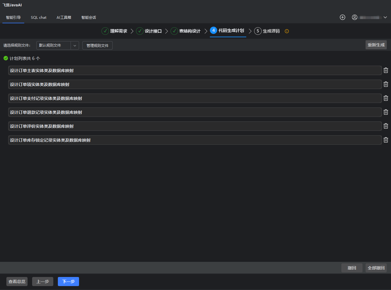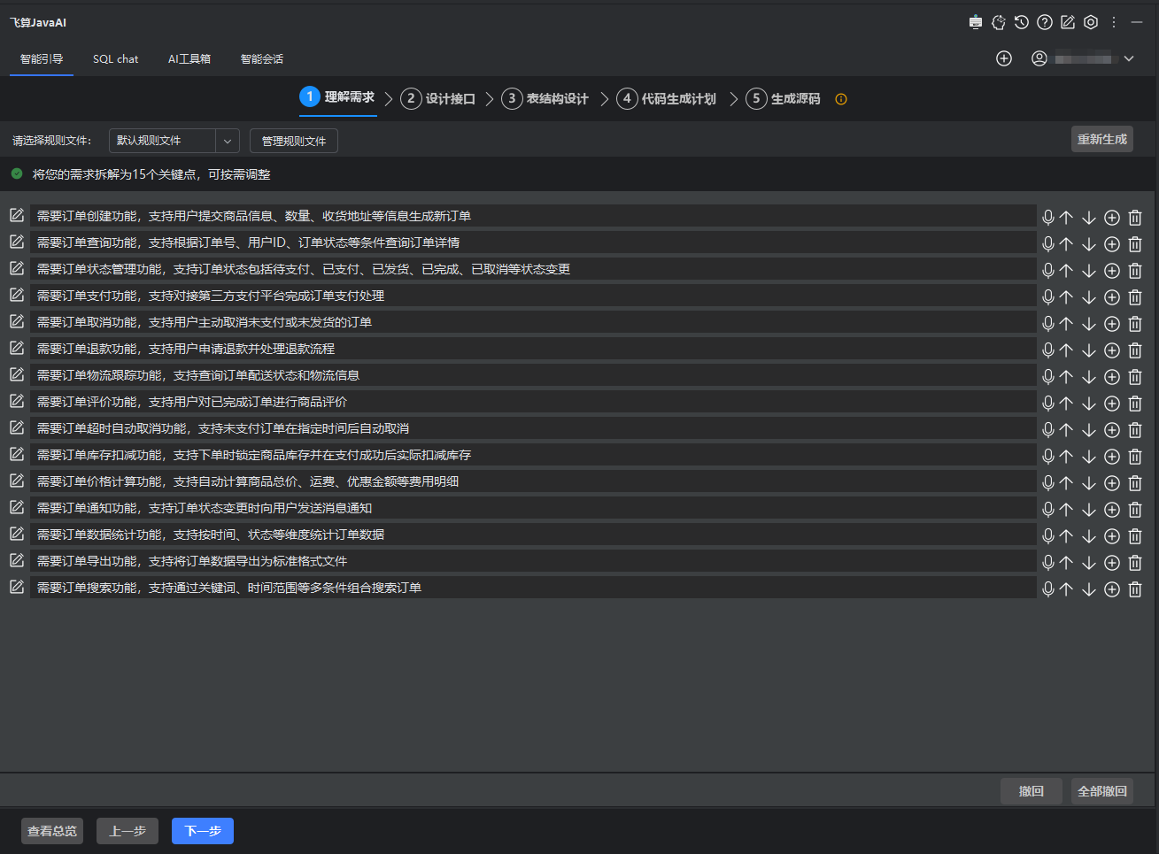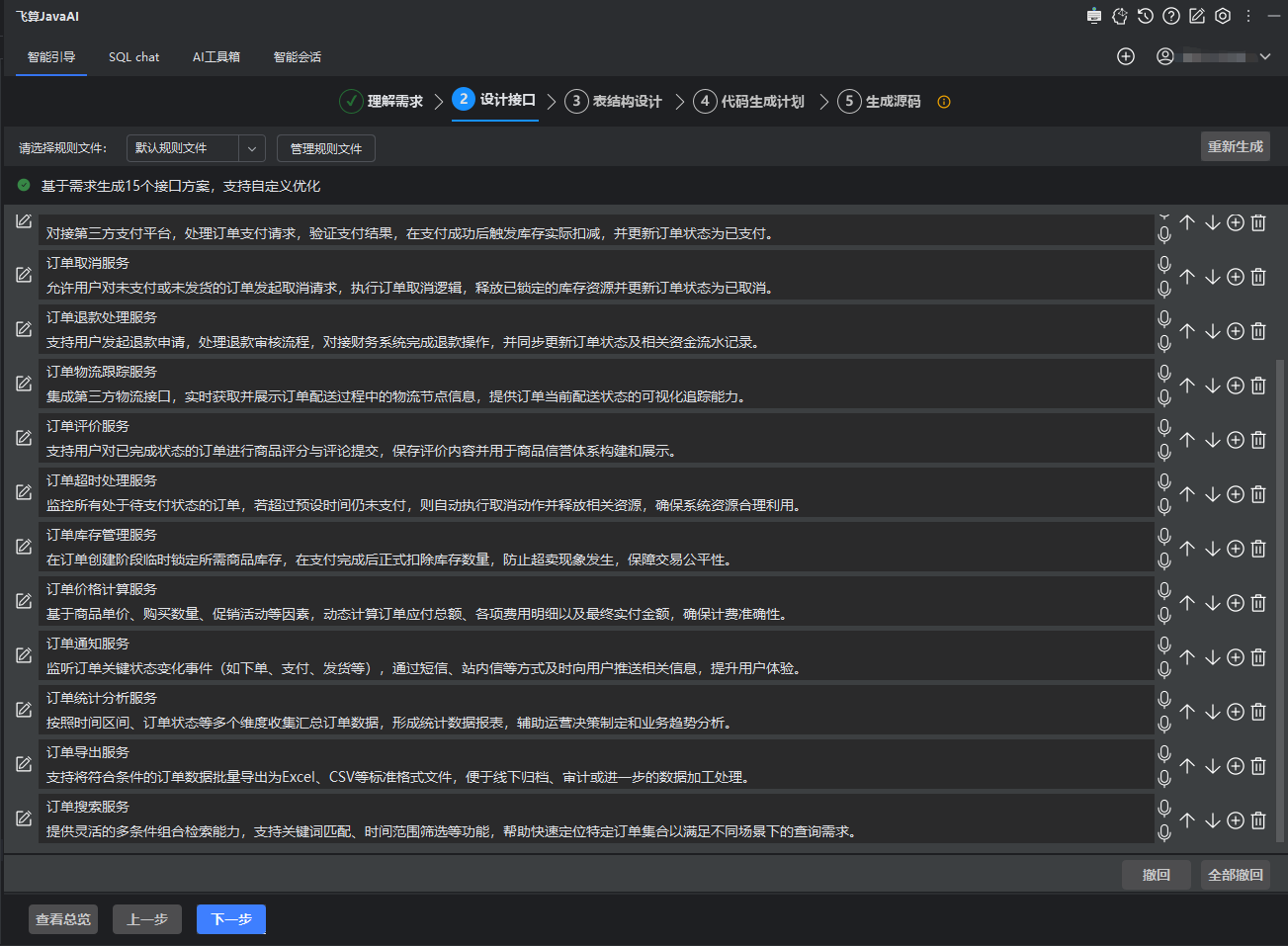 核心业务逻辑实现(约4小时):当输入“电商订单流程”等业务需求后,引导功能自动生成对应的领域模型、数据持久层代码、包含事务管理的业务服务层以及RESTful API控制器。所有产出代码均内置了团队约定的开发规范。