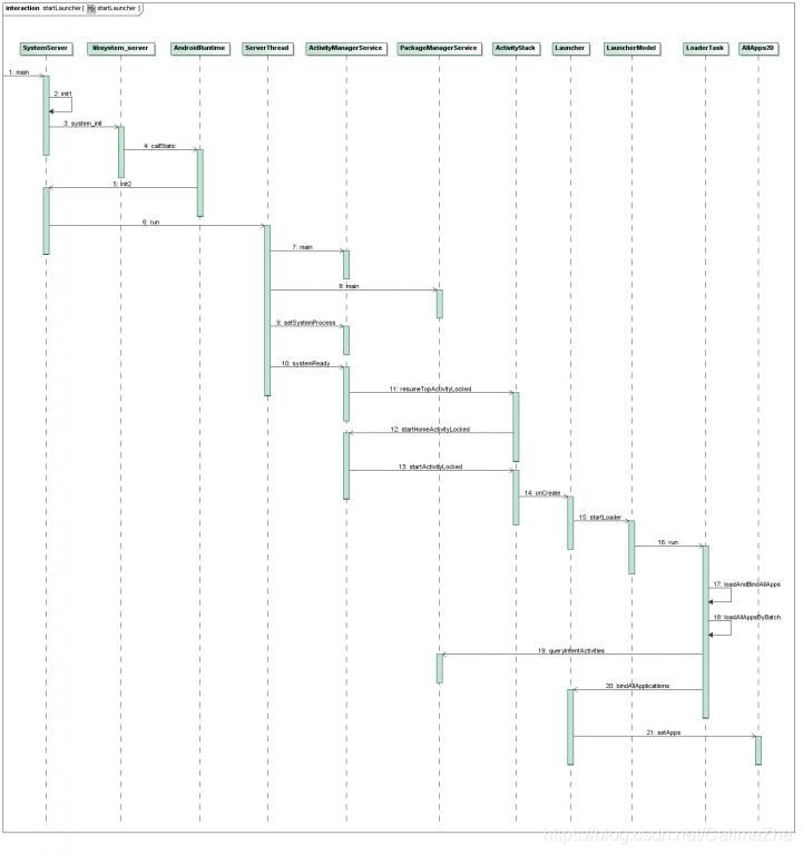 这个函数定义在frameworks/base/services/java/com/android/server/PackageManagerService.java文件中,具体可以参考前面一篇文章的Step 7。执行完这一步之后,系统中的应用程序的所有信息都保存在PackageManagerService中了,后面Home应用程序Launcher启动起来后,就会把PackageManagerService中的应用程序信息取出来,然后以快捷图标的形式展示在桌面上,后面我们将会看到这个过程。