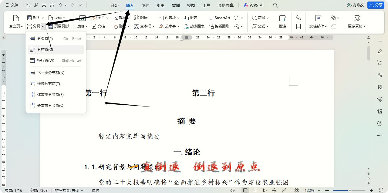 随后替换文本,重复插入分栏符。