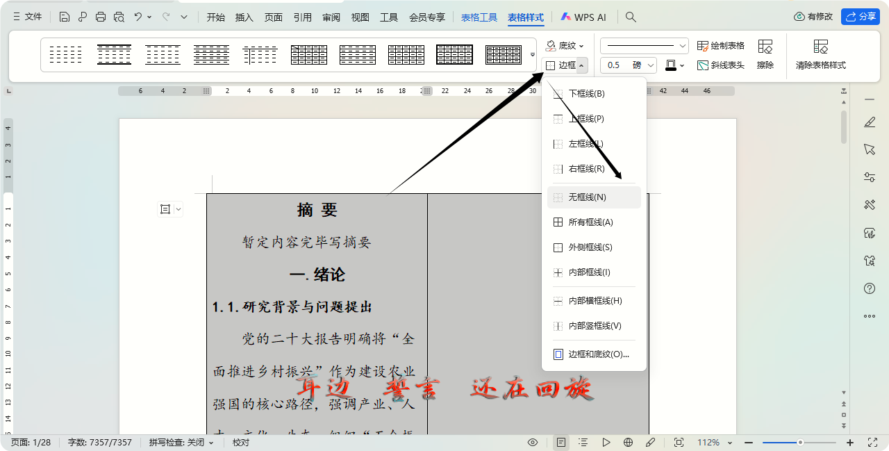 接着,修改样式:全选-表格样式-无边框