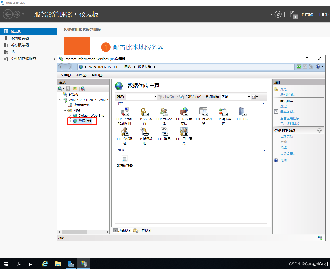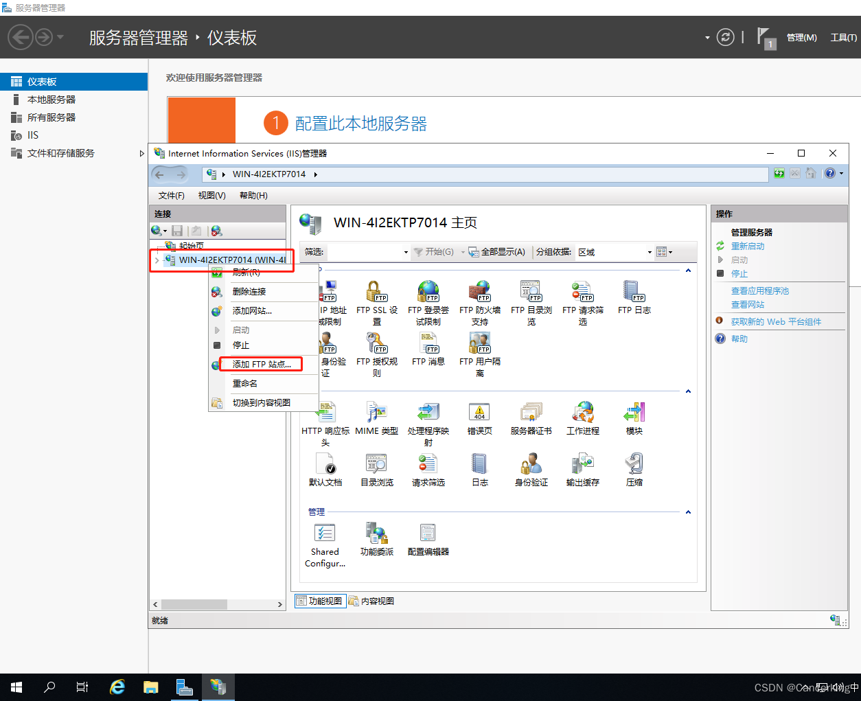 (1)直接选中服务器,然后右键选择“添加FTP站点”,或者是选中“网站”,然后选择右侧的“添加FTP站点”