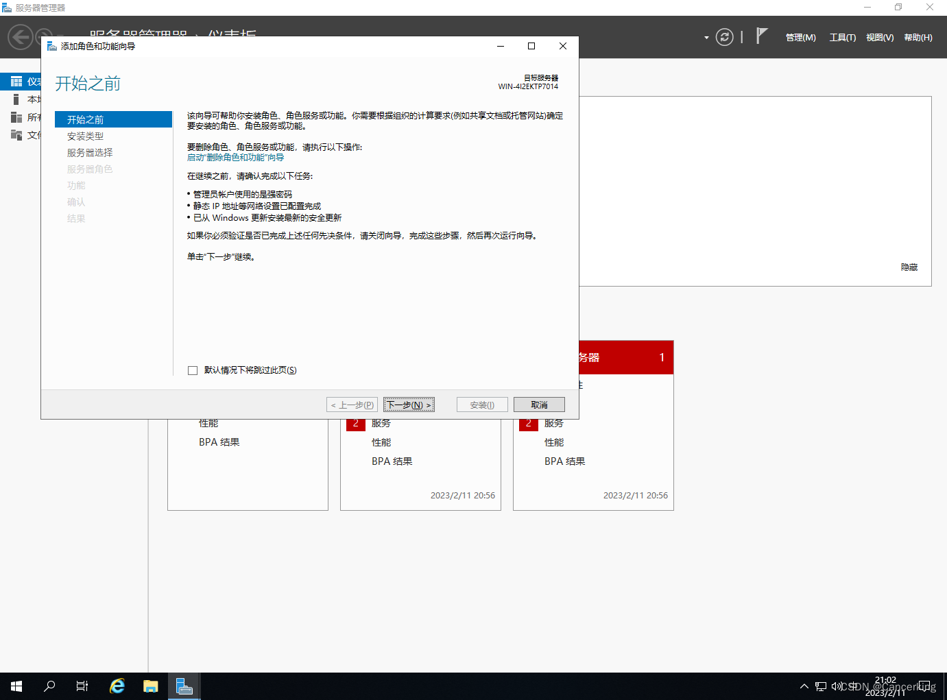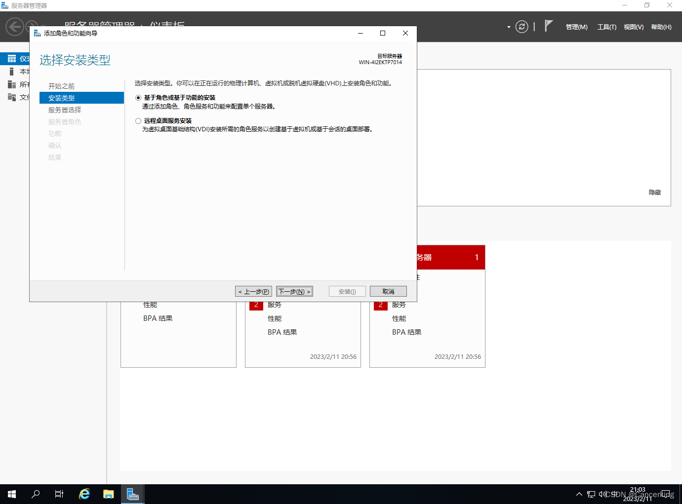 4、接下来选择“基于角色或基于功能的安装”并点击“下一步”