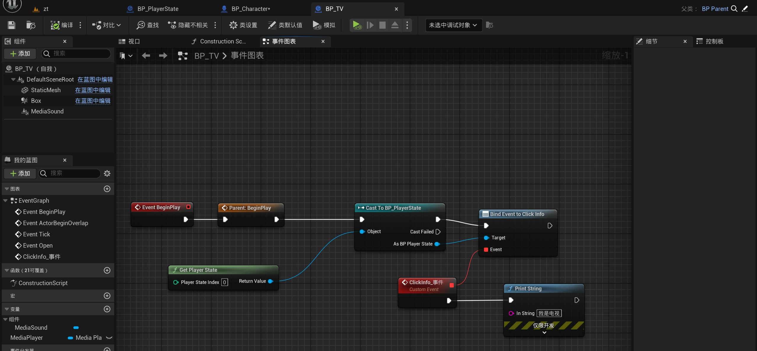 【补充】其实我们一般在 Player State 中创建事件分发器,然后在别的蓝图中 Call 和 Bind 事件分发器。
