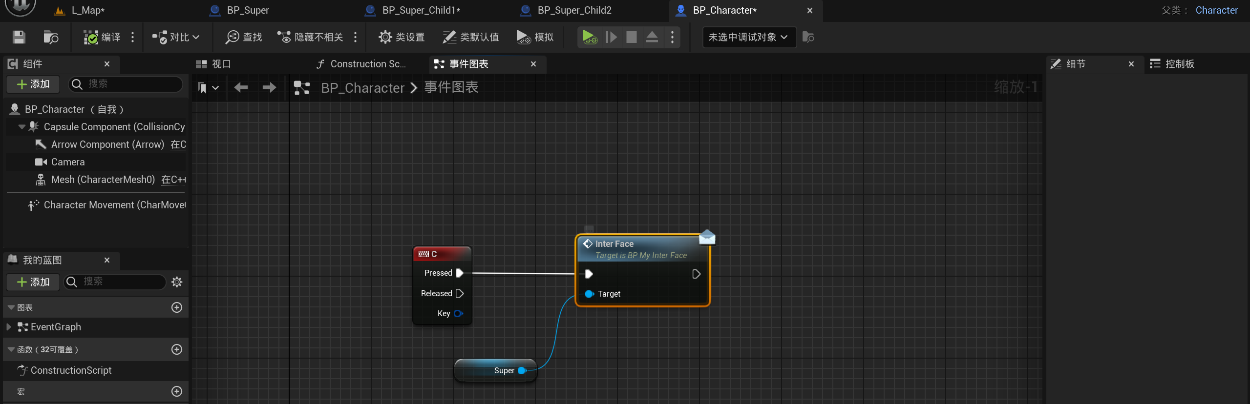 注意在 BP_Super 必须调用这个接口,写不写逻辑不重要。如果在 BP_Super 不调用的话, BP_Super 的子类无法调用。