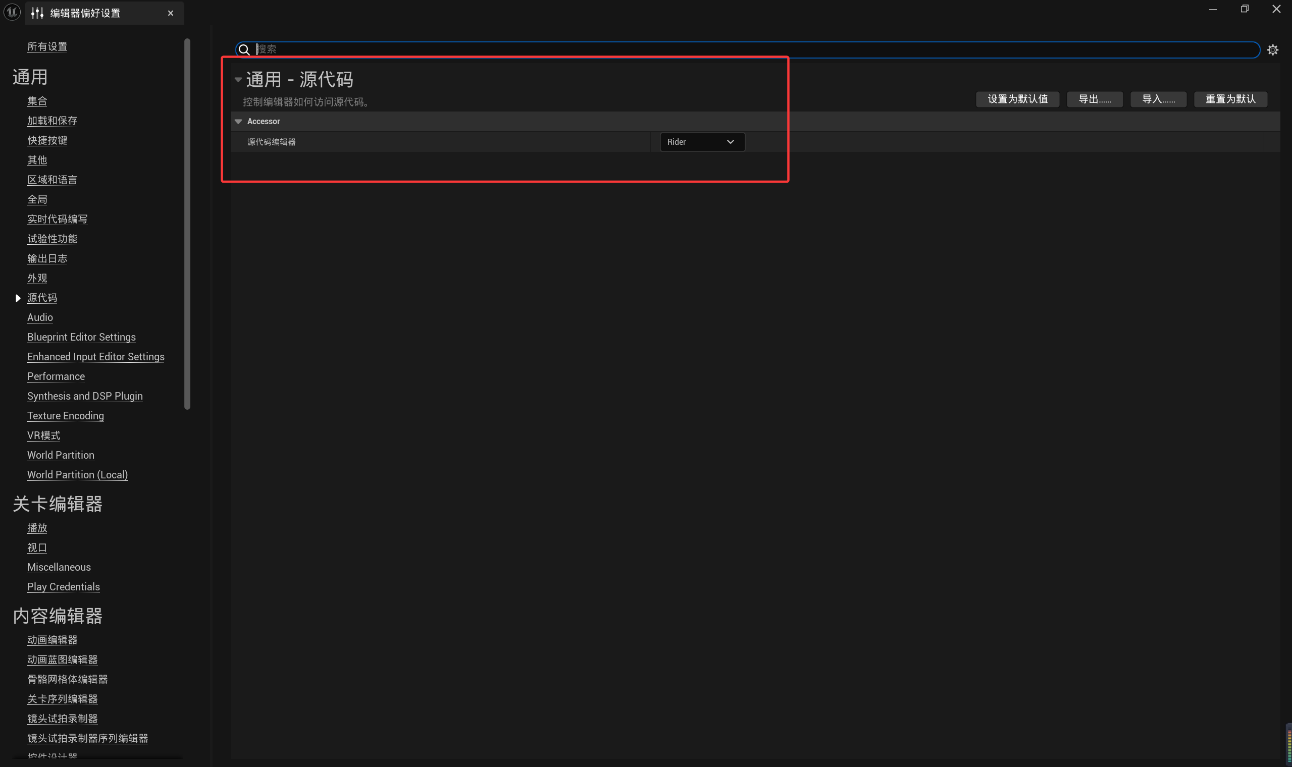 【编辑】-【编辑器偏好设置】-【通用】-【源代码】。