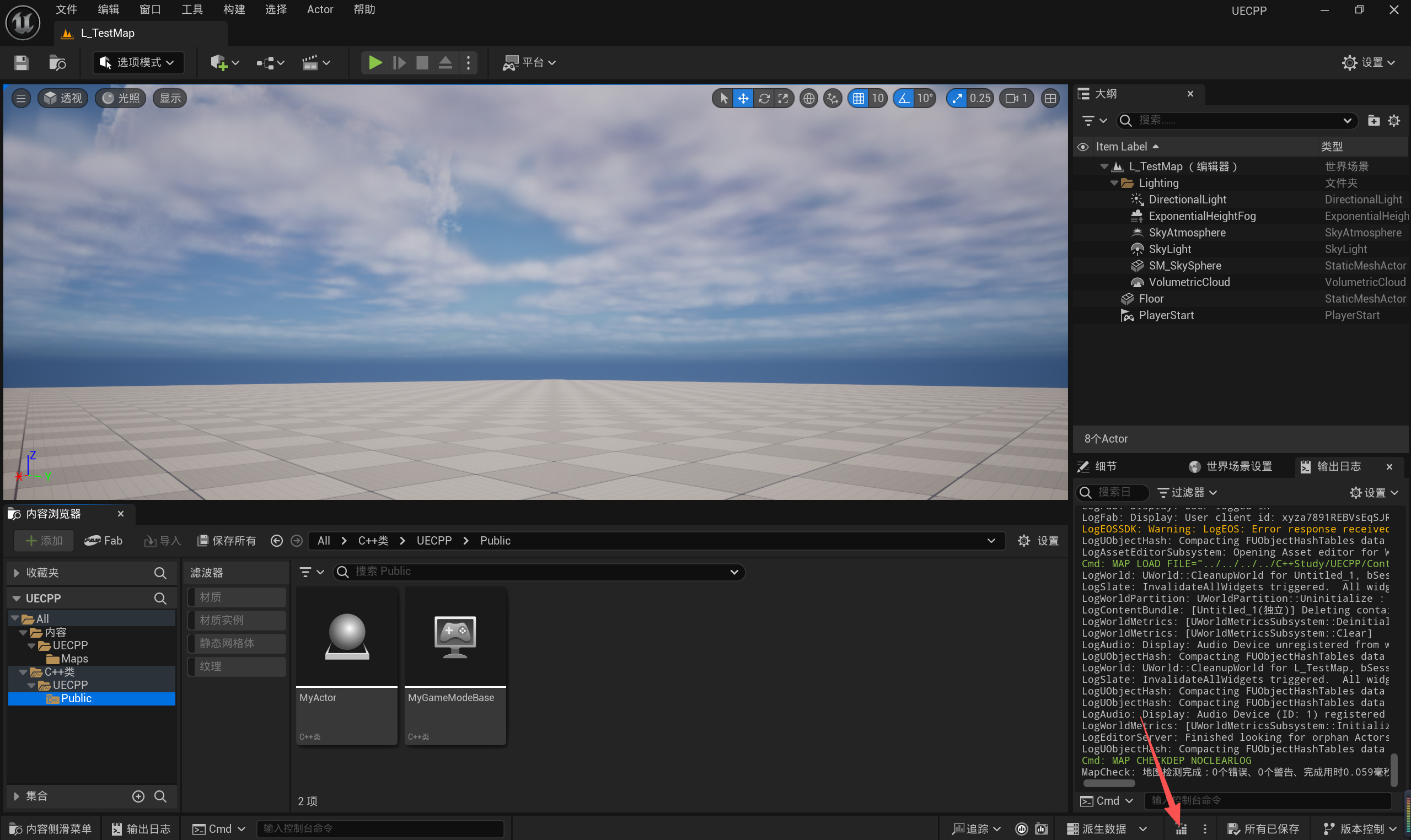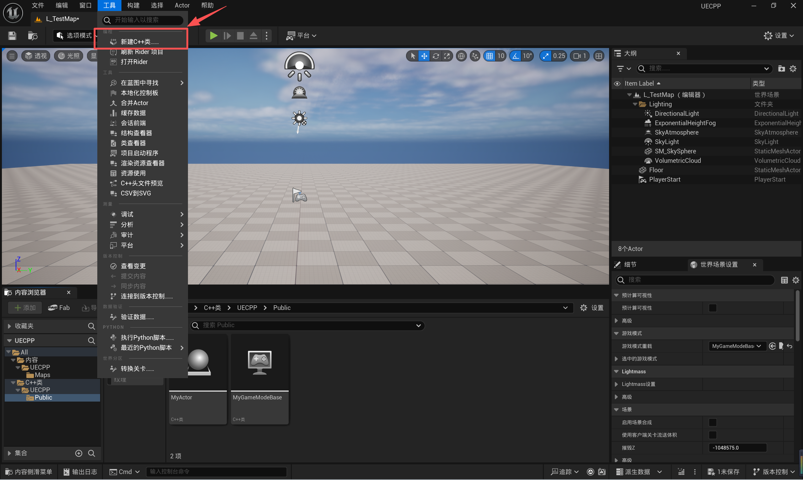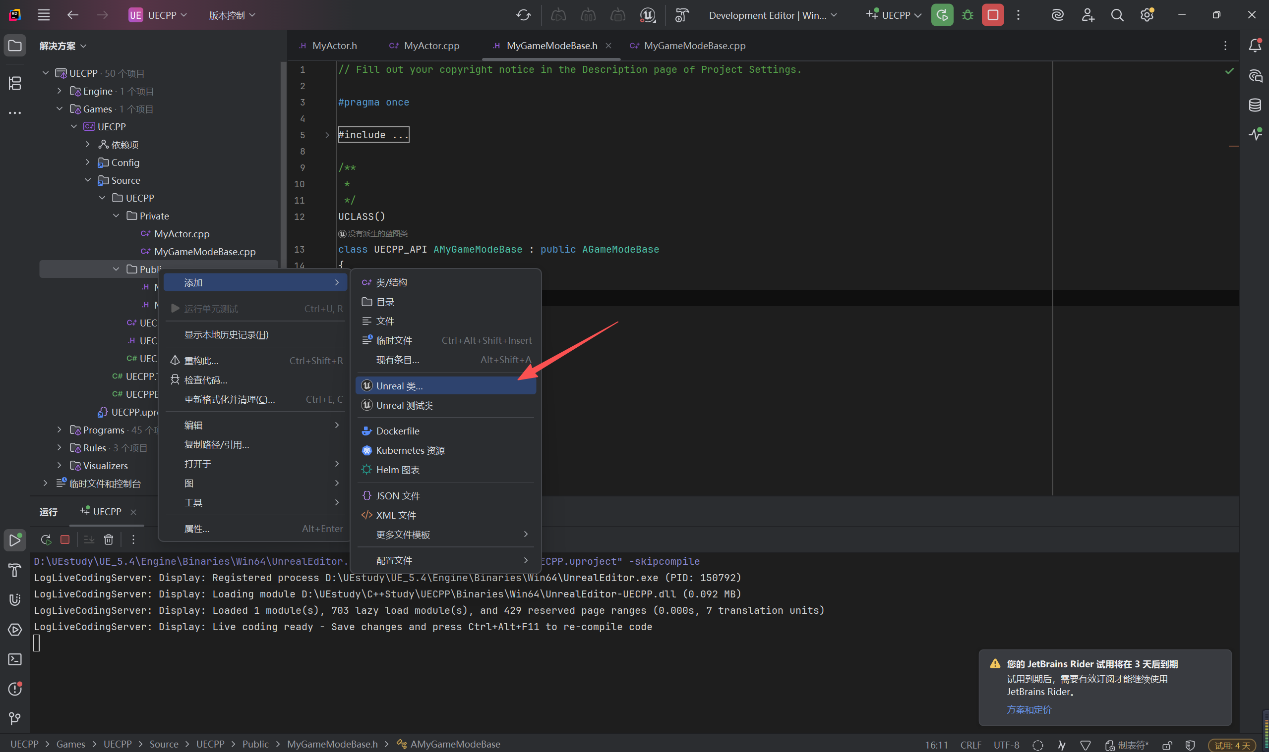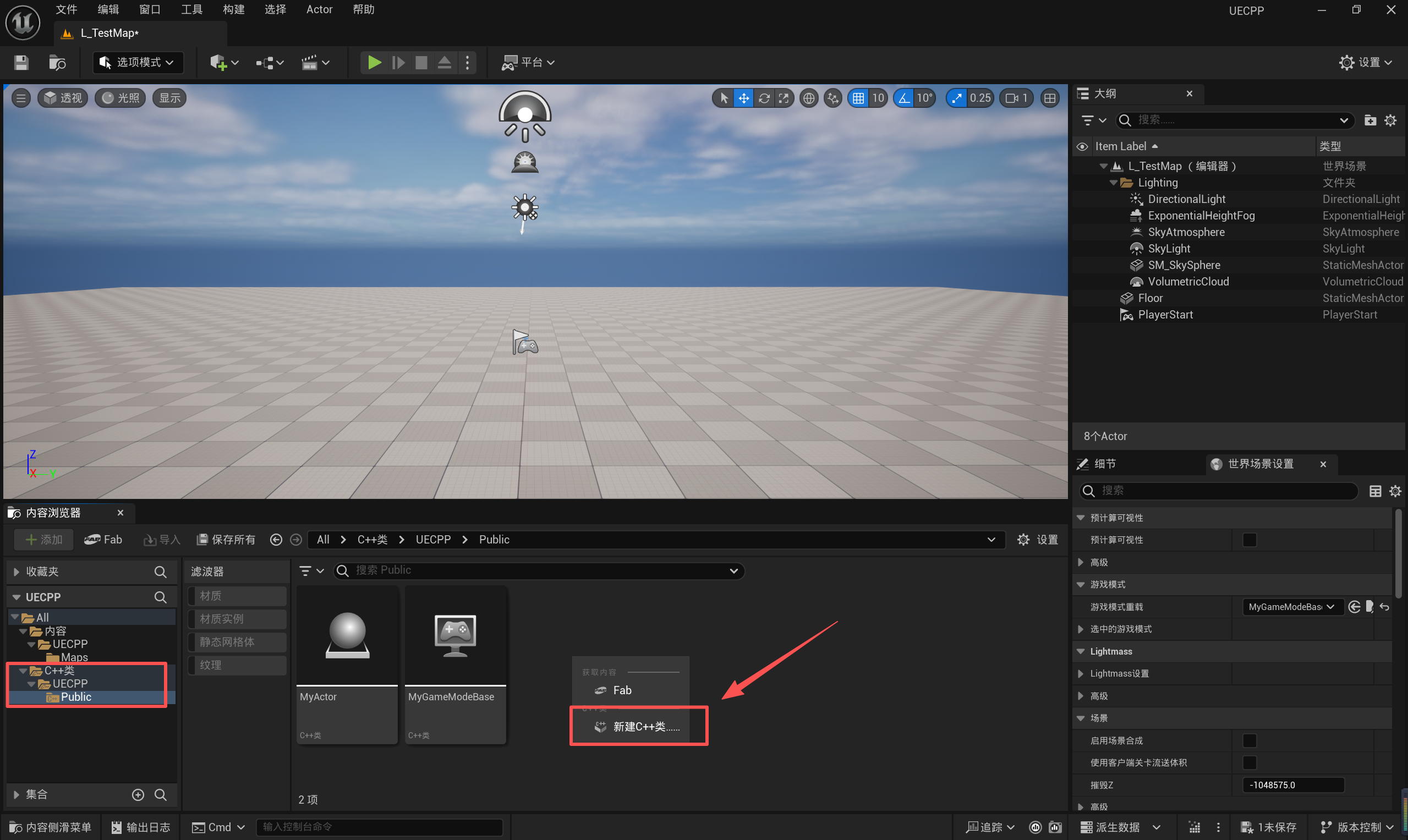 对于纯蓝图项目,我们通常双击 UECPP.uproject 进入虚幻引擎编辑器。但是对于 C++ 项目,我们通常双击 UECPP.sln 进行 C++ 编程与调试。