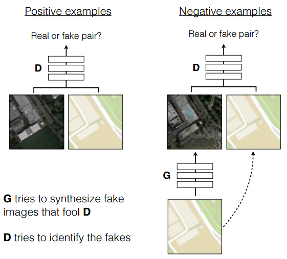 判别器D不断学习以区分真实图像和合成的图像;生成器G不断学习以蒙蔽D。D和G都有对输入图像x进行观察。