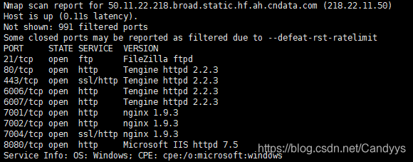 先用以下命名扫描目标机器或者目标C段都跑了什么服务
