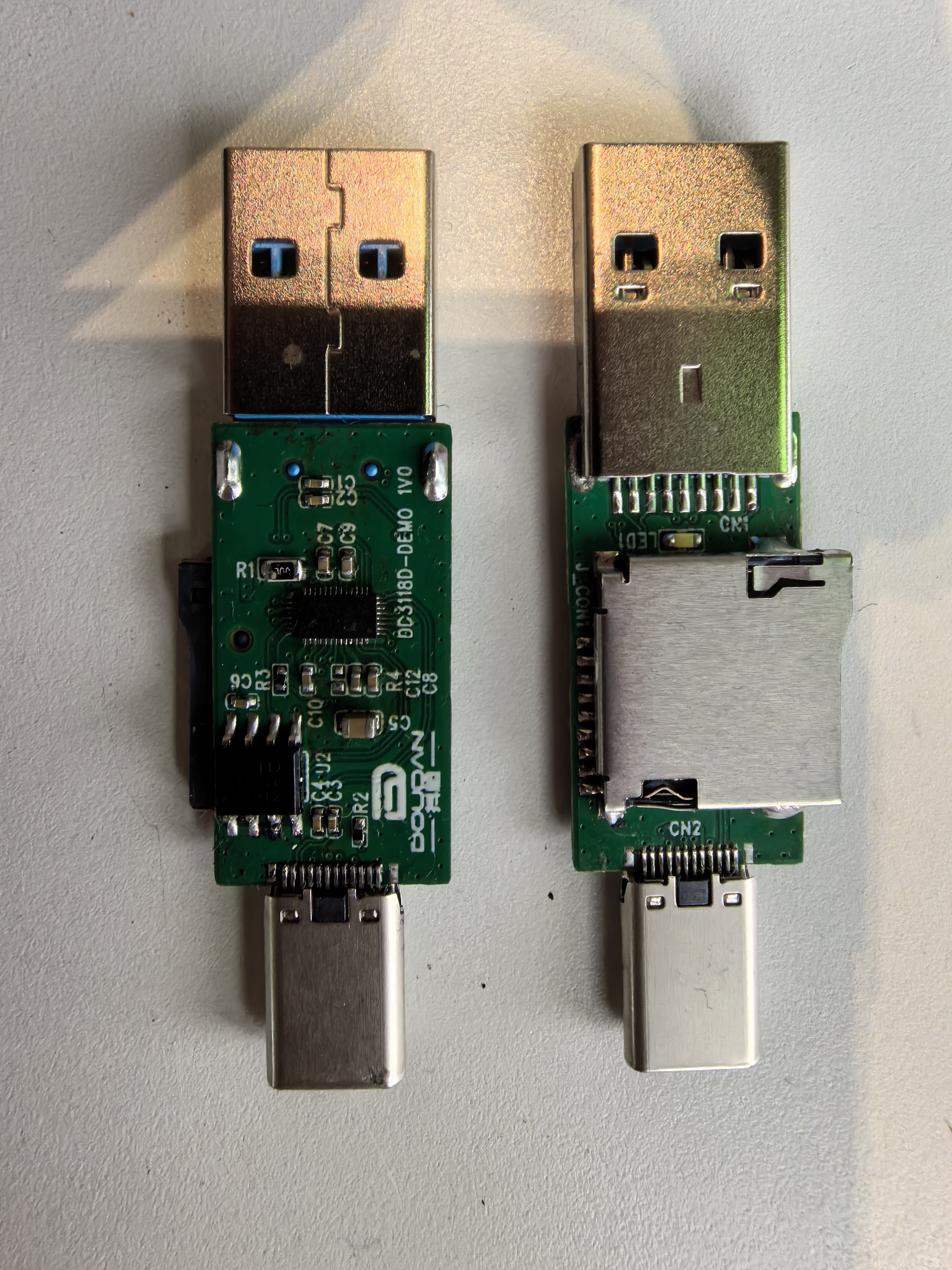 抖胆科技推出的DD3118s是一款基于40nm低功耗工艺设计的高性能读卡器控制芯片,它的核心功能是支持USB 3.0、SD3.0和eMMC 4.5协议。这是款国产芯片,主要用于替代创维的GL3213S方案,DD3118S创新性地集成USB-A和Type-C双物理接口设计,无缝兼容从USB 1.0到USB 3.0的全代际协议,并通过了严格的USB-IF认证。其超高速(SuperSpeed)通道支持5Gbps数据传输速率,确保大文件传输效率