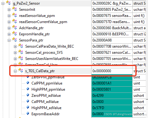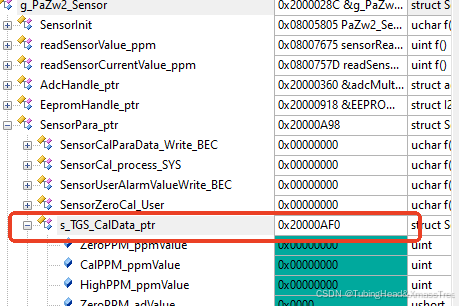 对SensorPara_ptr通过一个中间变量进行了赋值后: