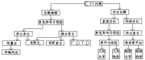 时域有限差分法(FDTD)、时域有限积分法(FITD)、有限元法(FEM)、矩量法(MoM)、传输线法(TLM)、线方法(ML)是纯粹的数值方法;而边界元法(BEM)、谱域法(SM)、模式匹配法(MM)、横向谐振法(TRM)则均具有较高的分辨率。