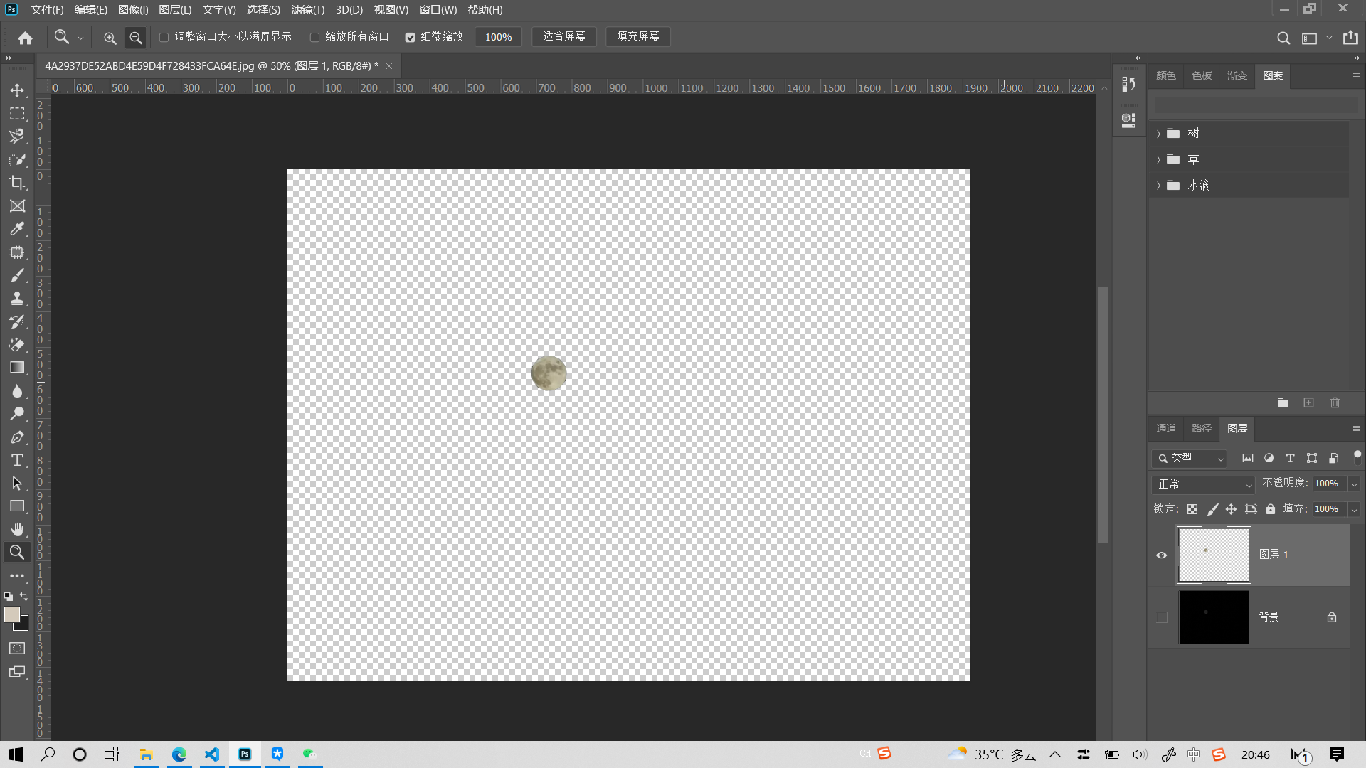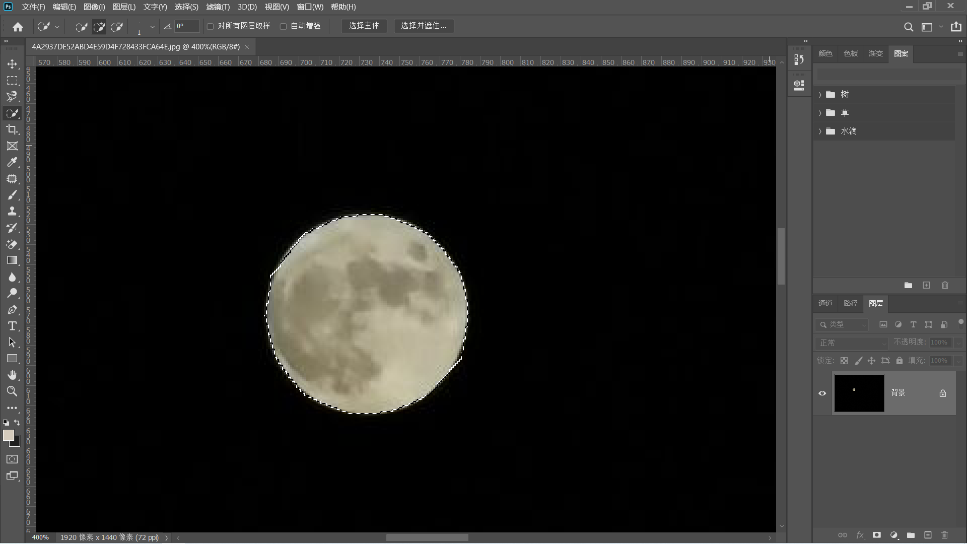 选中月亮图层,ctrl+T调整月亮的大小和位置