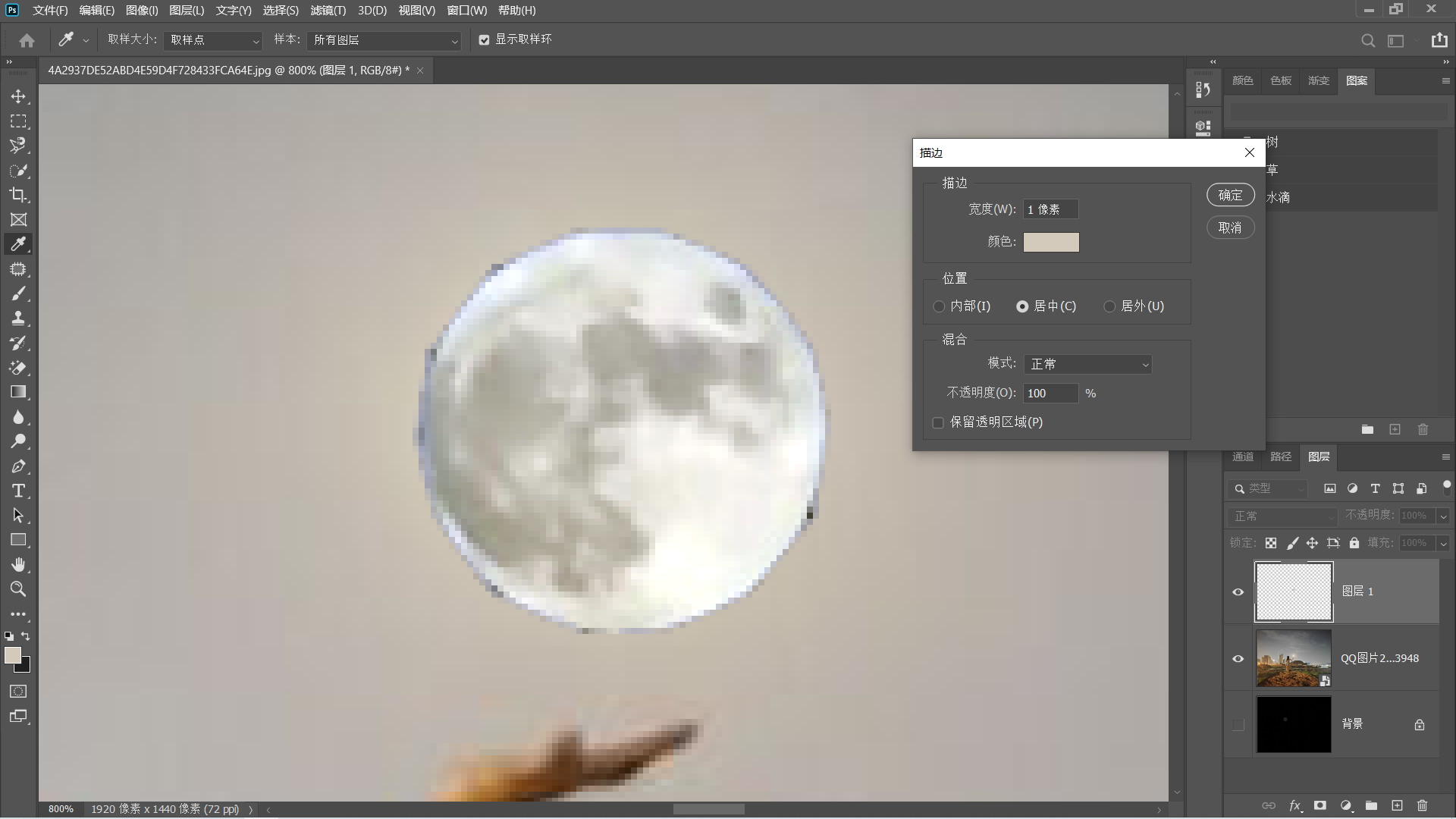注意,取色要取周围最近的环境的颜色,确认之后看效果,可以根据自己的图片情况进行调整