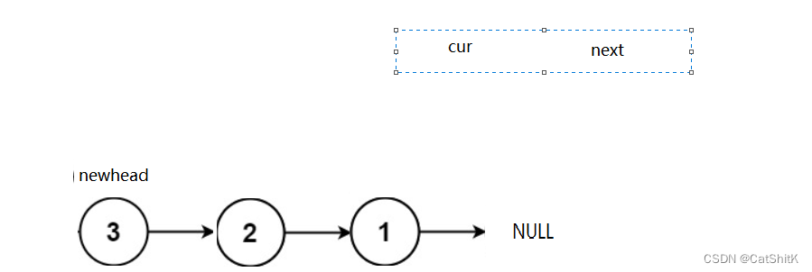 再让原表的cur的下一个节点指向newhead,这样就实现了头插,然后我们再定义一个指针来记录原cur的下一个节点,最后再将newhead指向cur,cur指向下一个节点next.