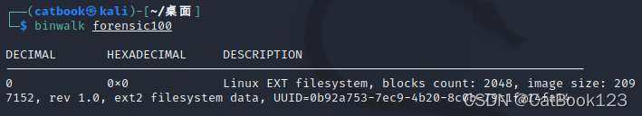在kali中使用binwalk命令查看,发现这是个Linux文件