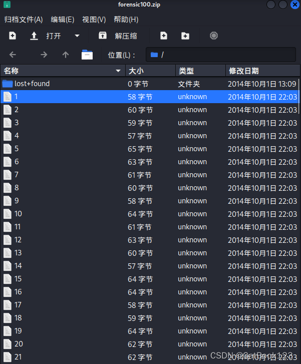 解压后尝试使用 cat命令查看一下,文件1里都有些什么