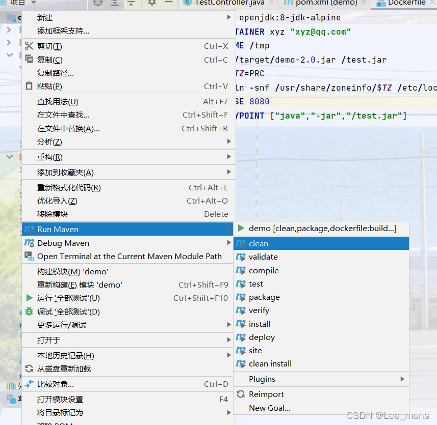 放入以下代码 clean package dockerfile:build -Dmaven.test.skip=true