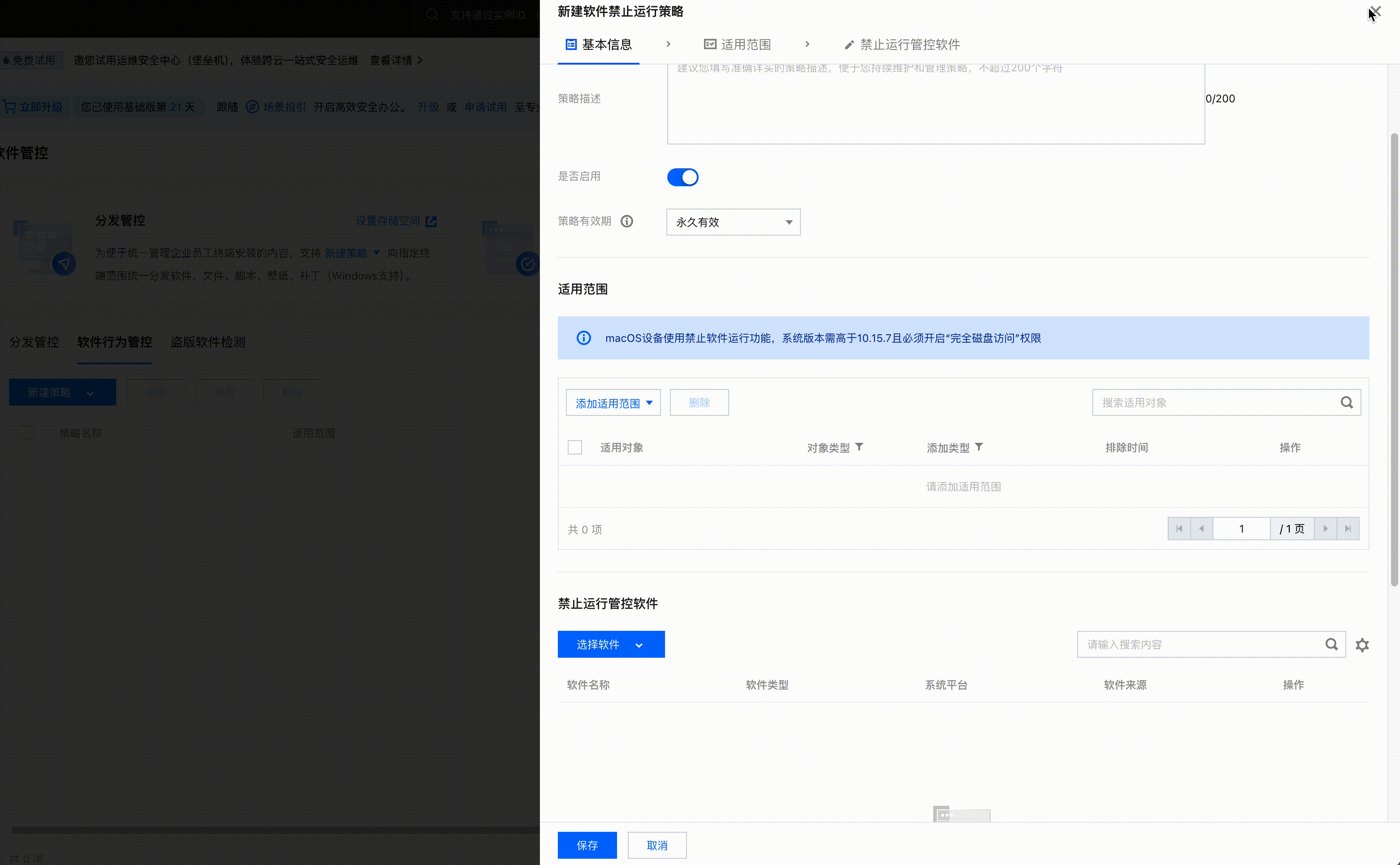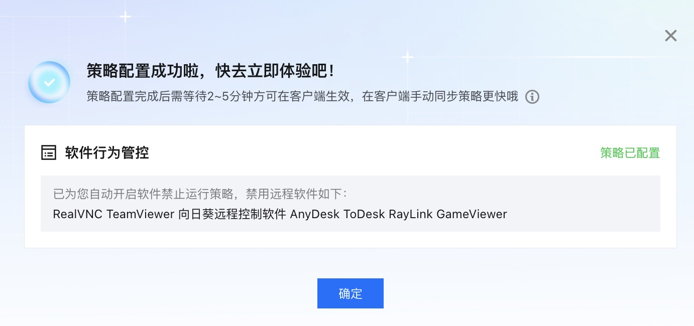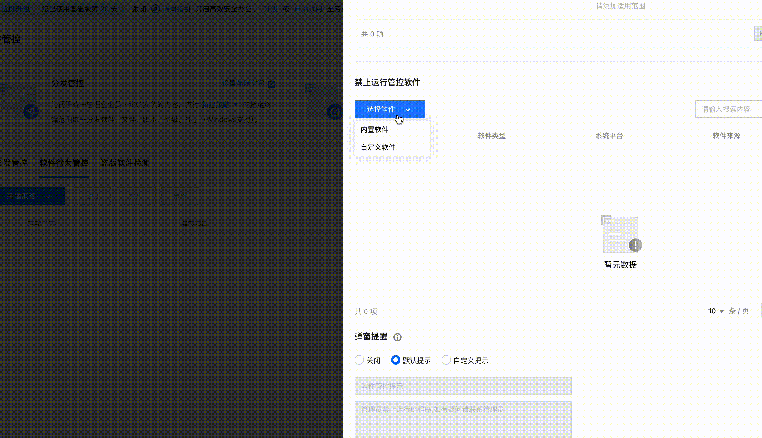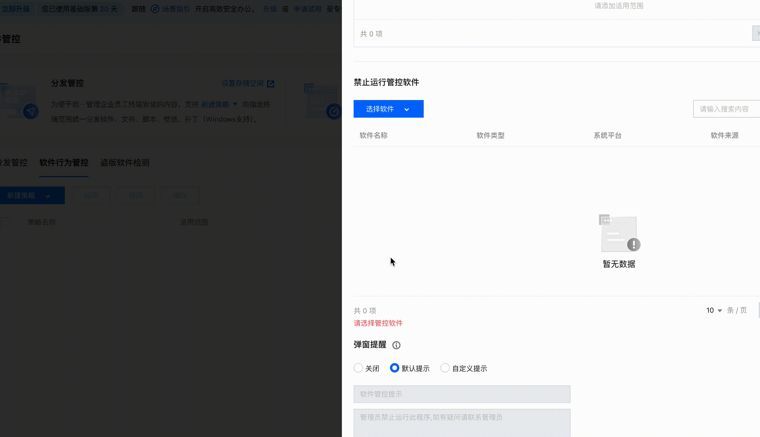 软件行为管控就是通过禁止运行策略,限制特定软件运行,规范软件的安装与使用,实现对员工终端软件的统一管控。