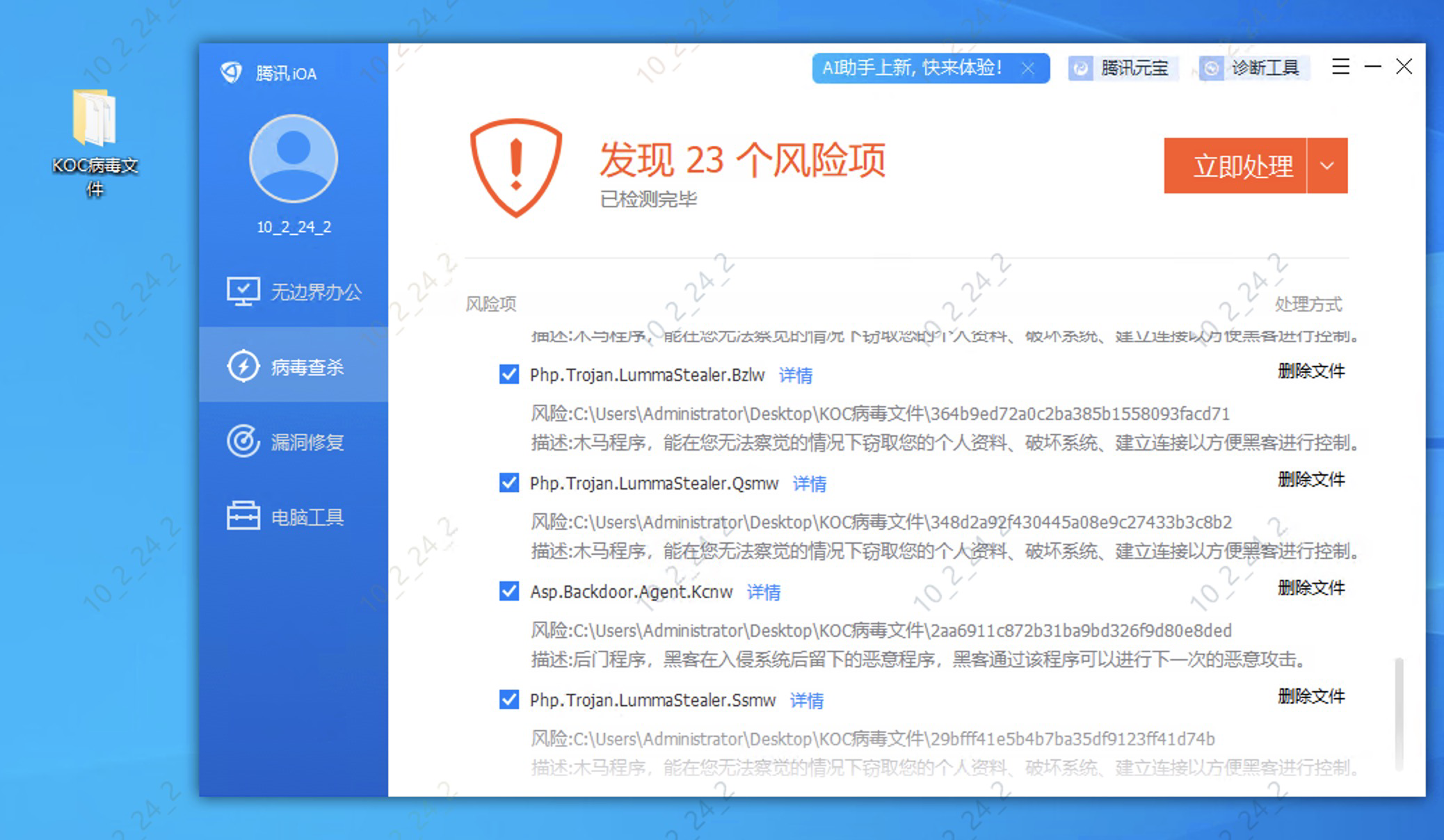 为了测试腾讯 iOA 的安全防护能力,我下载了一个包含风险的文件夹: