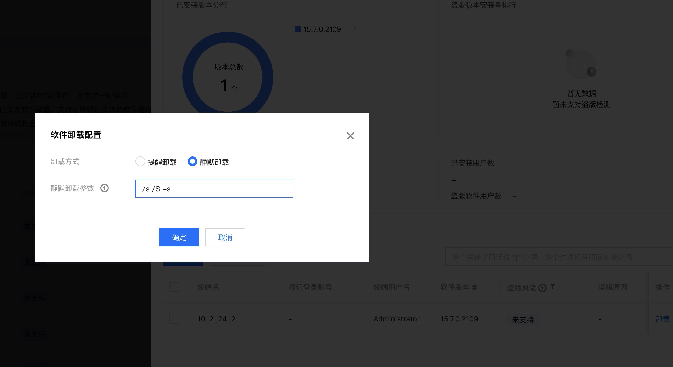 如果管理员想要直接卸载软件,可以选择静默卸载。静默卸载是指在用户无感知的情况下自动完成卸载操作,但前提是需要软件支持静默卸载,静默命令填写 /s /S -s。