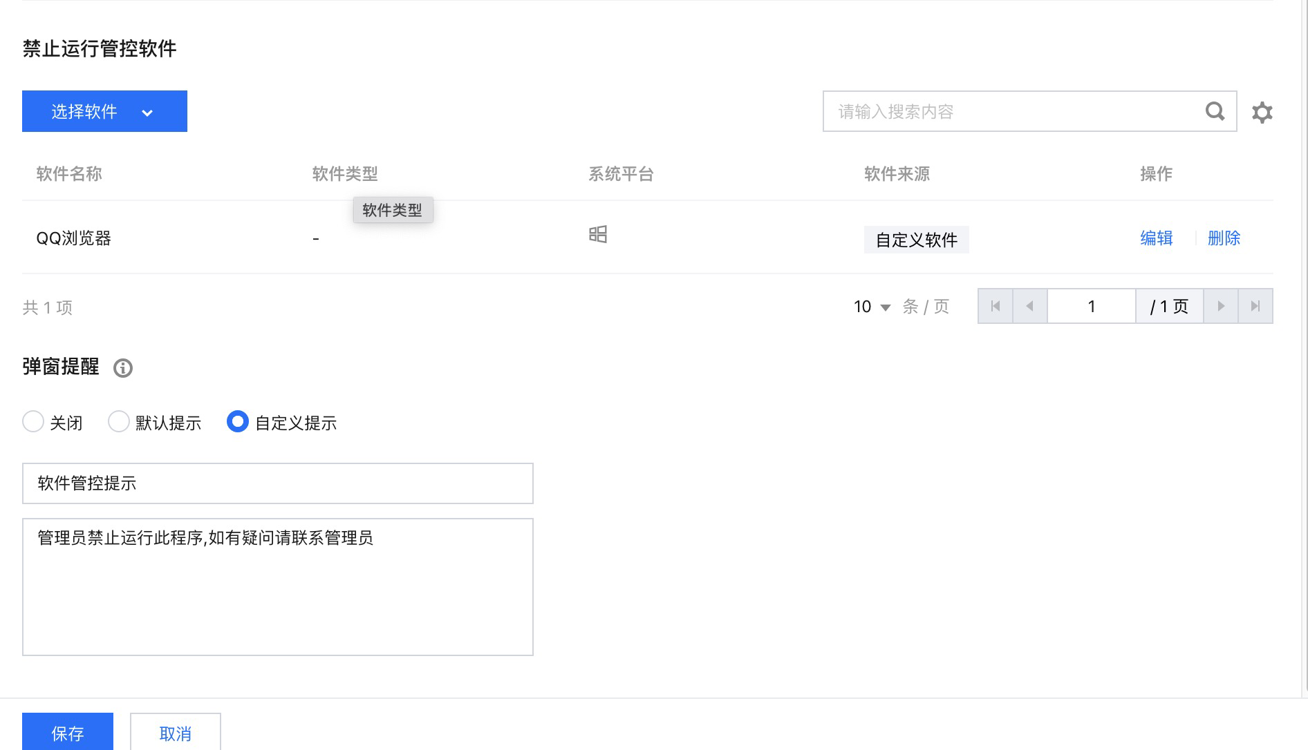 点击确定QQ浏览器就会出现在了管控软件列表中,同时也可以自定义弹窗提醒。