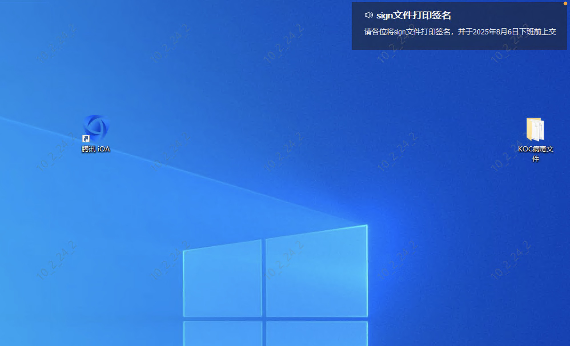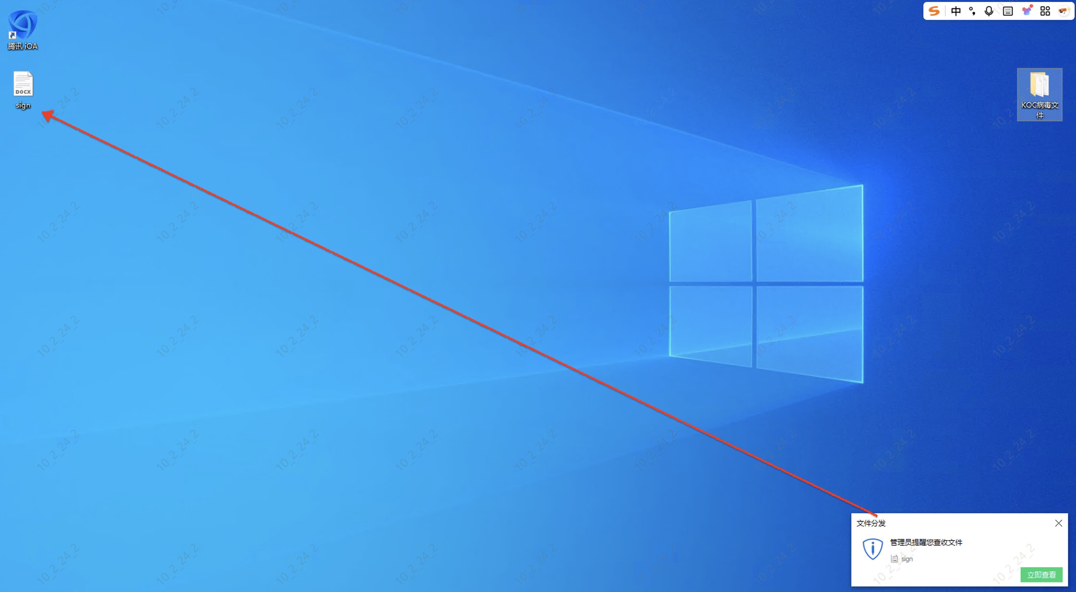 我们在 iOA 终端上查看,右下角出现了 iOA 文件分发的提醒,分发的文件也出现在了桌面上。