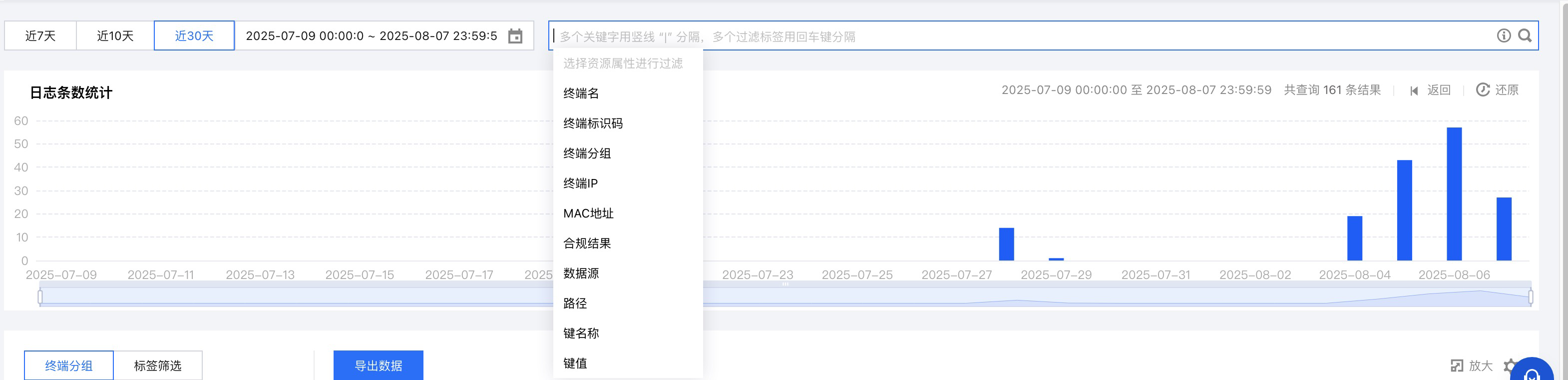 在腾讯 iOA 的事件中心也有日志审计,可以查看客户端操作、终端安全、终端管控、终端合规、终端运维、软件管控、管理员这7种日志。