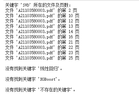 要求,查询一个文件中的pdf文件中的关键字,输出关键字所在PDF文件的文件名及对应的页数。