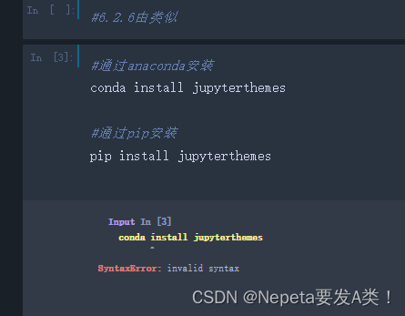想换掉惨白的notebook主题,研究了半天指令装了,但是还是显示不可行,原因就是不在变量环境里。