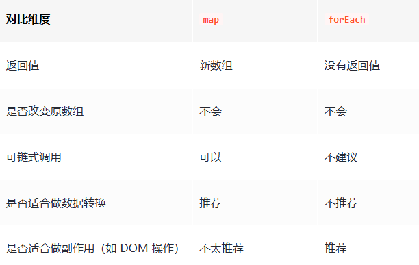 在 JavaScript 中,除了 map,我们还有一个非常常用的数组方法:forEach。它和 map 一样都可以用来遍历数组,但它们之间有一个关键区别: